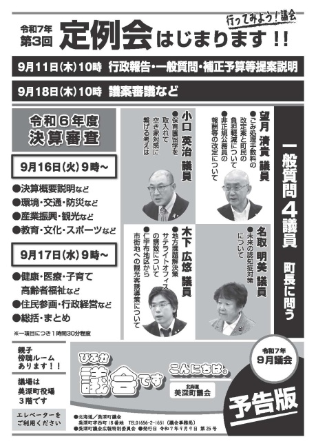 - 議会だより 予告版(2025年9月号) (PDF:2.25MB)